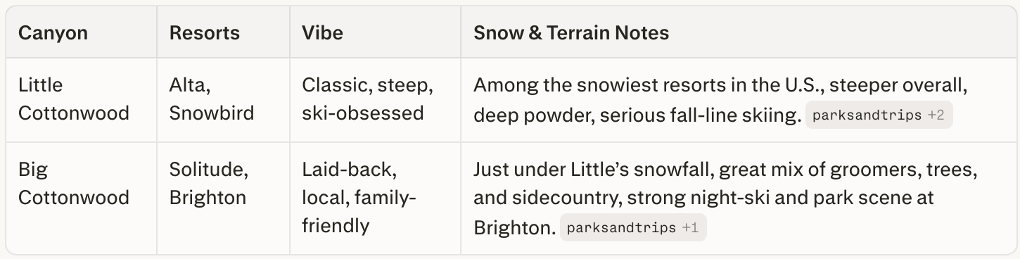 Little vs. Big Cottonwood at a Glance